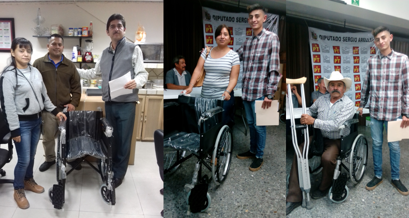 El diputado Sergio Arellano Balderas entregó 5 sillas y de ruedas y entregó apoyos para medicamentos a 5 ciudadanos que lo solicitaron.
