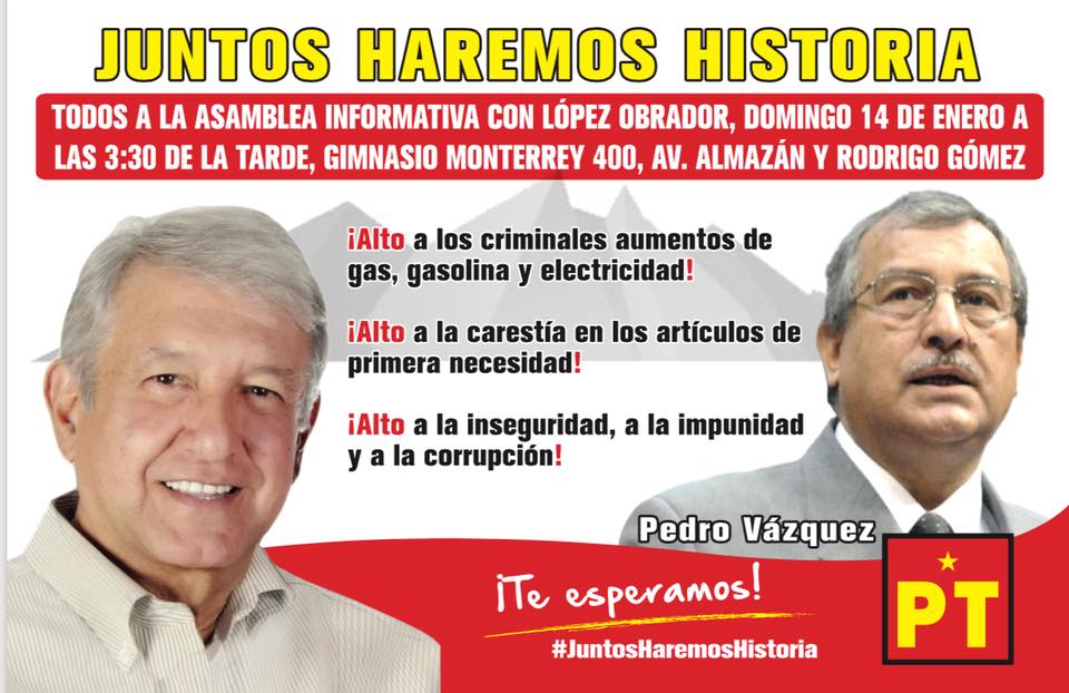 #JuntosHaremosHistoria No faltes, te esperamos. El Partido del Trabajo te invita. Asamblea informativa con López Obrador. Domingo 14 de enero del 2018 a las 3.30 […]